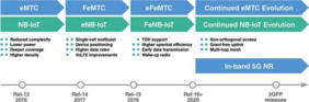 5G NR 还支持频段内 LTE-IoT,这是带有NB-IoT 的LTE-M,因此“长期演进(LTE) ”仍将是名符其实的“长期”。最新的LTE-M和NB-IoT解决方案已经面世并符合3GPP Release 14要求。这两项技术都在伴随着每个新的3GPP Release而不断发展,直到它们最终(截至现今的3GPP Release 16)成为 5G mMTC。这意味着目前使用 LTE-M 和 NB-IoT 的 LTE-IoT 设备仍可在5G NR下工作。这对于 5G NR 使用核心 5G 网络的独立 5G 网络 (SA) 和非独立网络(NSA)都是如此,后者通过4G/EPC(演进分组核心)网络来提供5G NR 服务。